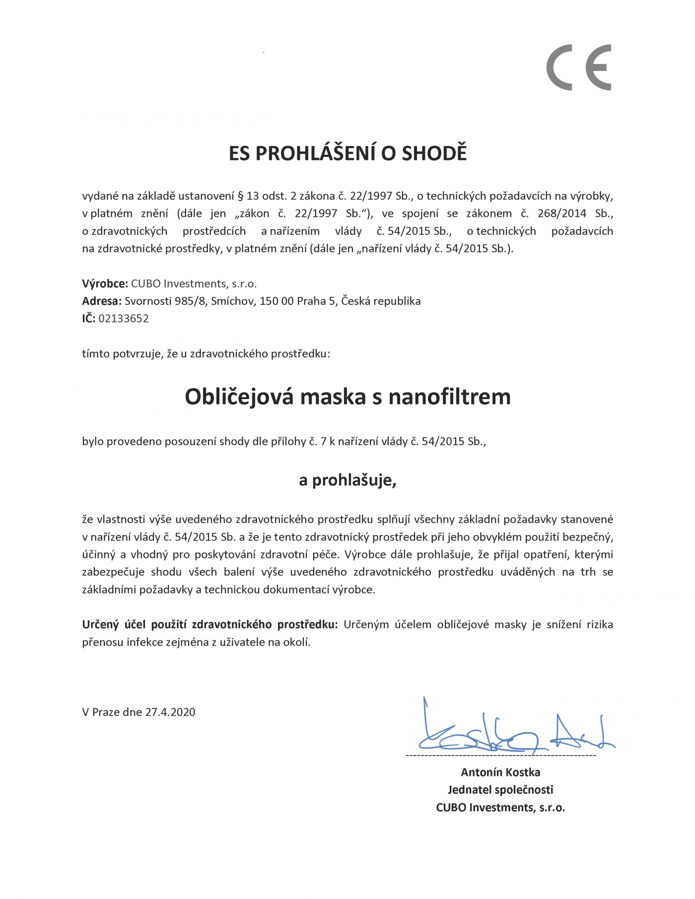 CUBO pohlášení o shodě pdf